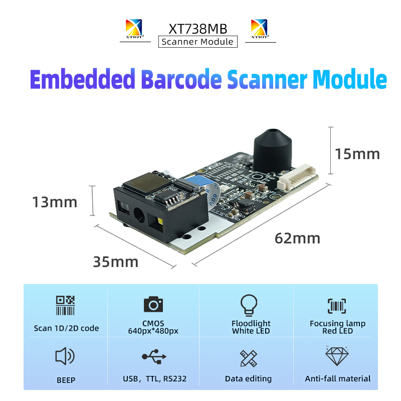 The XTIOT XT738MB barcode scanning module is a high-performance scanning module designed for embedded applications, suitable for a variety of smart devices and automated systems.