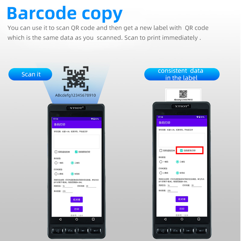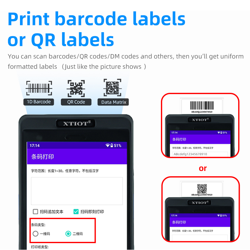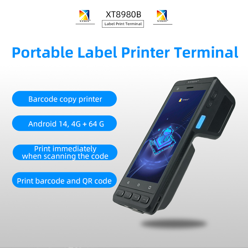 XT8980B Warehouse Handheld Terminal Barcode Scanner With Printer Label Printer All In One
