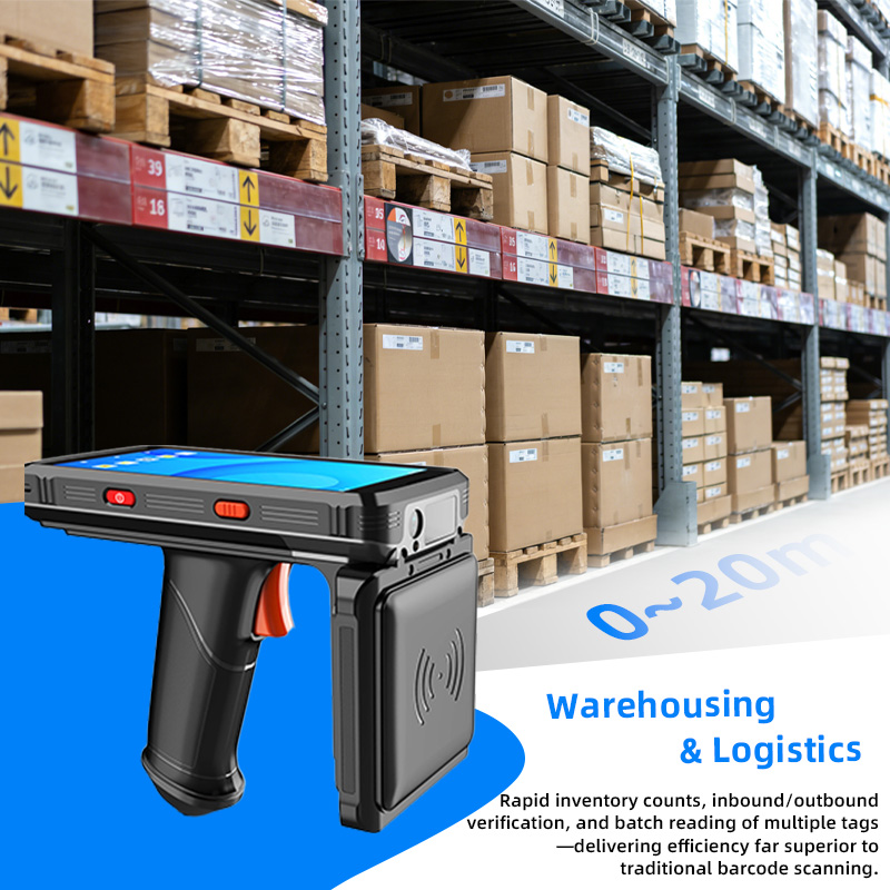 Android 10.0, 4GB RAM + 64GB storage, 5.5-inch HD screen. Reads 1D (QR, Code 128, EAN, UPC) and 2D codes. IP65 dustproof and waterproof, 1.5m drop resistance, -20°C to +60°C operating range. 5200mAh battery (7200mAh with trigger). Optional RFID, LF/HF/UHF/NFC, and passport MRZ/OCR modules . Ideal for warehouse inventory, logistics tracking, and cold chain operations.