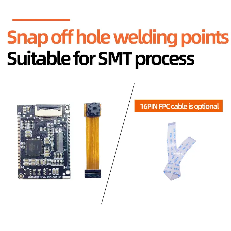 The XT2001CM and XT2001DM feature split core board and lens design with 1.5mm stamp holes for SMT mounting . The separation between board and lens is achieved via flexible interconnection, and XTIOT supports customization of cable length and PIN assignments to suit specific integration requirements .