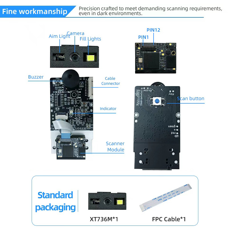The XT736M is equipped with USB, Serial TTL, and RS232 port output interfaces, ensuring seamless integration with various systems . Its USB interface supports both HID and VCOM modes, allowing developers to choose the optimal communication method for their application—whether they need simple keyboard emulation or full serial control.