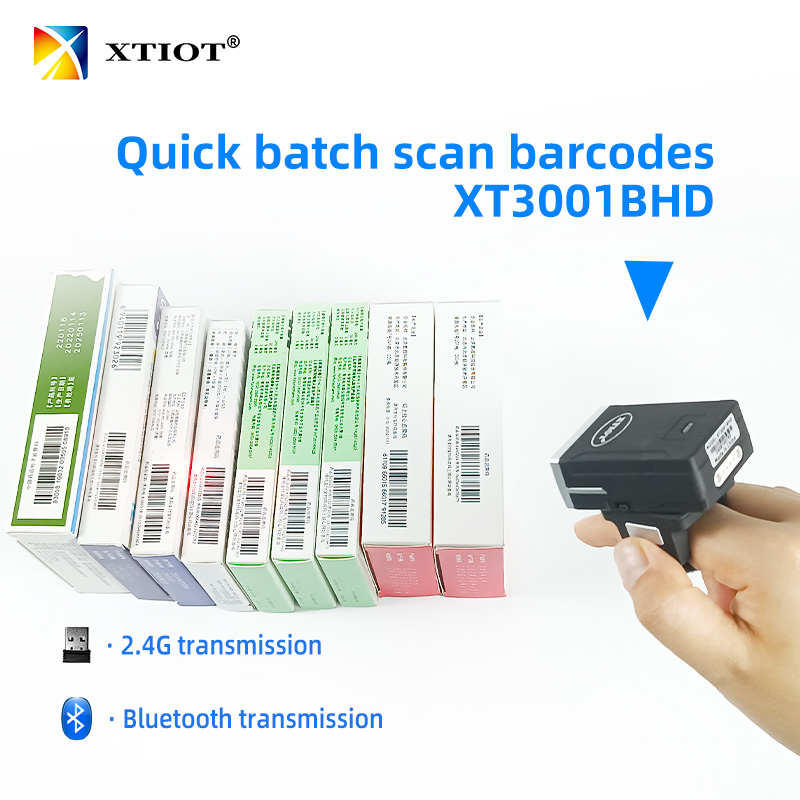 The XT3001BHD supports Bluetooth Classic SPP serial port with HEX format data transmission . In inventory management applications, users can configure the output format to include specific prefixes or suffixes that identify the scanning device, operator, or location. The ring scanner also features batch scanning with built-in storage for over 130,000 barcodes, with customizable data formatting for batch uploads .