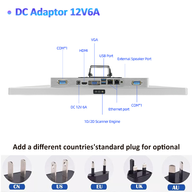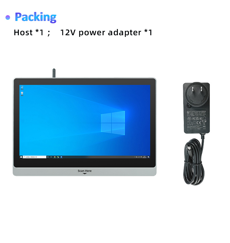 XT802F-X86 is 15.6'' wall-mounted price checker which can install Android operating system or Linux operating system. OS: Windows10 Pro Screen: 15.6'' HD Storage: 4G+64G (8G+128G/256G is optional) Network: WiFi, Ethernet LAN Bluetooth: Bluetooth 4.0 Barcode Scanner: 2D USB: USB port * 4 Power: 12V6A DC Power Supply