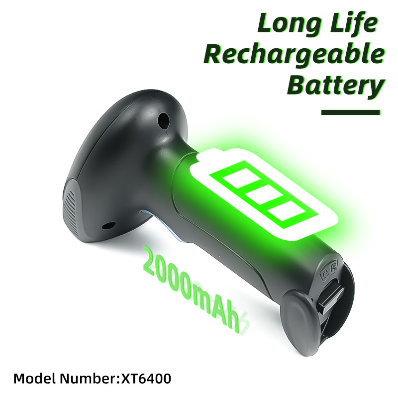 XT6400D is bluetooth wireless 2D barcode scanner which suitable for warehouse inventory management, chain store, etc. It can work with tablet PC, phone, computer, laptop, etc. Communication: Bluetooth HID, Bluetooth SPP, Bluetooth BLE, 2.4G, USB-HID, USB-CDC Compatible System: Android, IOS, Windows, Linux OS, MAC, etc. Technology: CMOS, 640x480 Decoding Ability: 1D, 2D Resolution: ≥5mil
