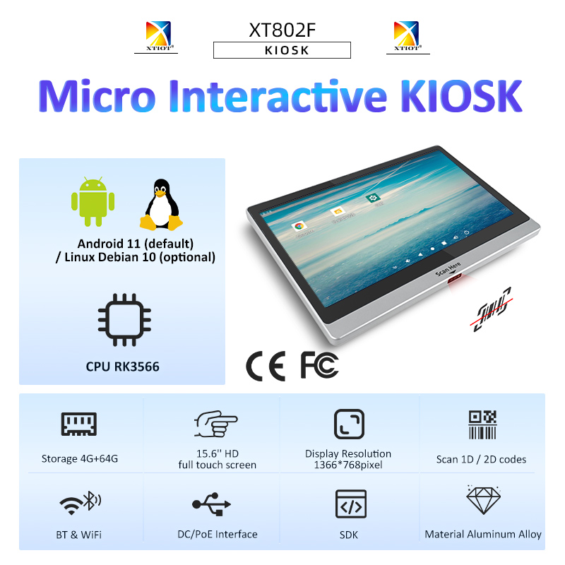 XT802F 15.6'' Android11/13/14 Linux Micro KIOSK Price Checker